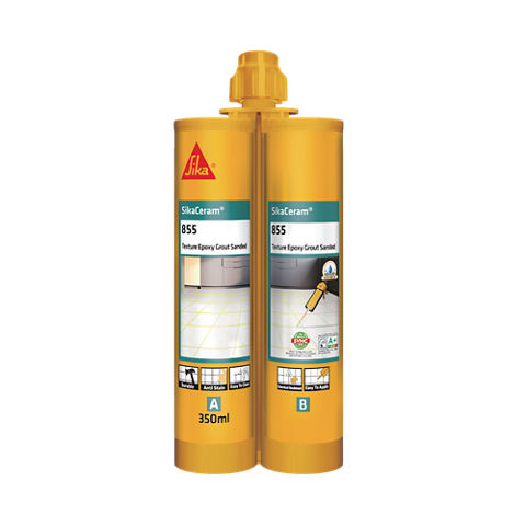 SikaCeram®-855 texture epoxy grout sanded is a two-component grout formulated with advanced polymers and premium colored sand particles. This product features a refined, sand-textured finish available in a range of vibrant colors and provides a striking appearance after curing. It is ideal for grouting and edge sealing of most types of ceramic, porcelain and non-absorbent tiles, making it suitable for wet rooms areas such as kitchens and bathrooms. It is not suitable for external applications.